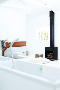– Vår sovrummssvit var ursprunligen ett öppet badrum som vi trodde inte gick att ändra på. Men under renoveringen hittade Carey ett perfekt sätt för oss att gömma toaletten i skåpet – just när det gäller den aspekten är vi båda är måna om avskildheten.