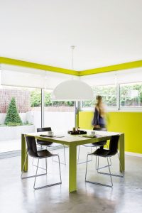 Huset känns väldigt öppet men samtidigt intimt, inte minst tack vare de vita persiennerna som man valde just för att kunna skapa en mer dämpad belysning och en större känsla av avskildhet. De höjs och sänks på ett väldigt diskret sätt, nästan helt obemärkt, men när de väl är nere skiftar färgerna i hemmet och en helt annan atmosfär tar vid.