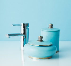 i turkost, 335 kr, Room. Tvättställs-blandare, 1 595 kr Adora/Gelia Ahlsells.