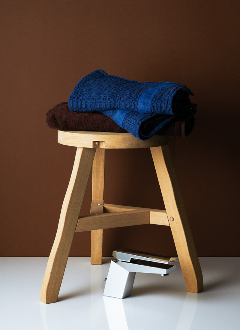 Smarta små möbler blir praktiska avställningytor i badrummet. Pall, Offcut, design Tom Dixon, 1 990 kr, David design/Snickarbacken