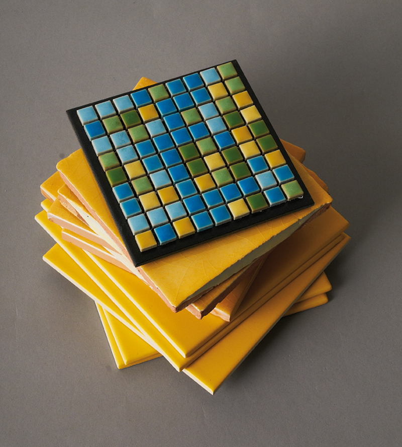 Mosaik Joycolor, 2 198 kr/kvm, Centro. Matta gula kakelplattor, 298 kr/kvm,Centro. Gula lerkakelplattor med raka och slagna kanter, 1 598 kr/kvm, Centro.