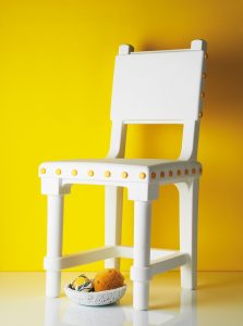 Extramöbler för avkoppling och avlastning behövs i ett badrum. Stol, Gothic chair i plast, 2 825 kr Moooi/The Art of Living. Skål i porös sten, Foam bowl, 1 700 kr, Moooi/The Art of Living.Tvättsvamp 185 kr, Gertrude. Citrontvål, 95 kr Saponi/Gertrude.
